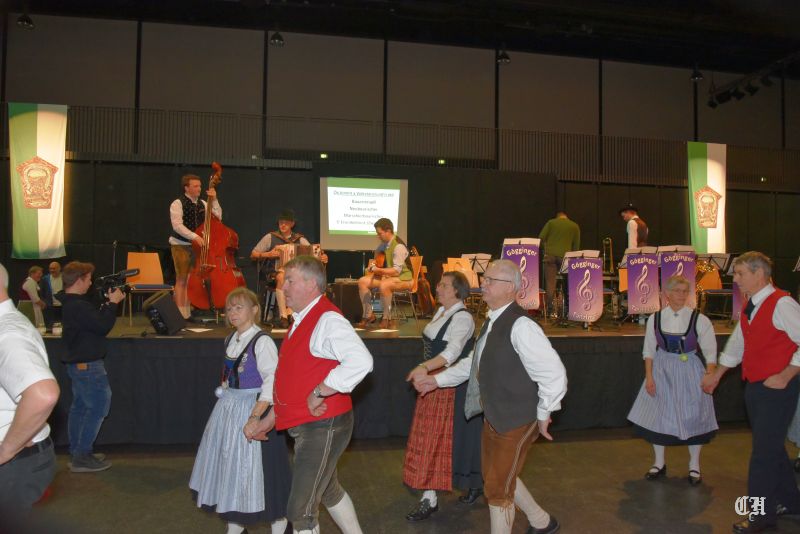 Es war ein imposantes Schauspiel, als die 140 Burschen und Dirndl der Trachtenjugend auf die große Tanzfläche in der Mitte der Dreiländerhalle marschierten und mit dem Auftanz den Ball eröffneten. Anschließend schwangen die Ballgäste bis in die Morgenstunden praktisch pausenlos das Tanzbein. Bei der Stange hielte sie die Musikanten mit Polkas, Boarischen und Walzermelodien. Aber auch mehrere Runden mit Volkstänzen und moderneren Stücken begeisterten die Tanzverrückten.