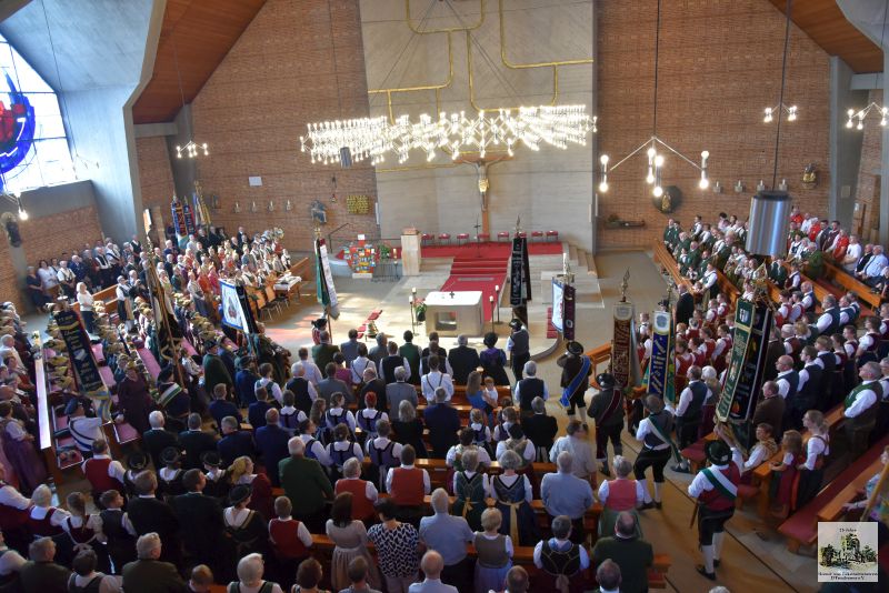 Der Höhepunkt war jedoch der Gaufestsonntag, der mit dem Festgottesdienst in der Pfarrkirche startete. Trachtenpfarrer Josef Tiefenböck stellte in seiner Predigt heraus, dass Brauchtum und Tradition noch immer die tragenden Säulen unter dem bayerischen Himmel sind. Und so ließ er es sich nicht nehmen mit Stadtpfarrer Alexander Aulinger mit einer „Hoibe“ „auf eine Gott gesegnete Zukunft der Trachtlerinnen und Trachtler“ anzustoßen.