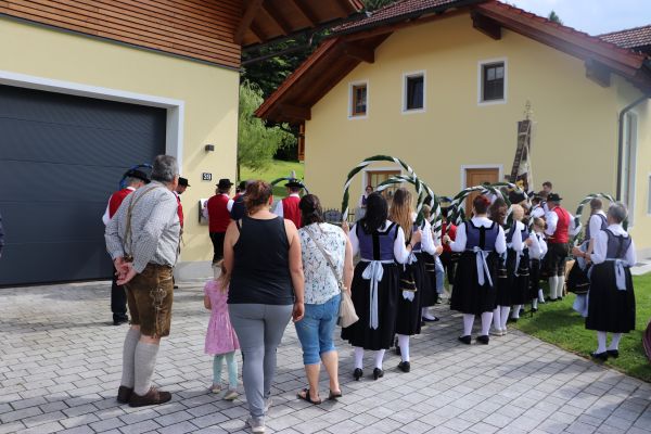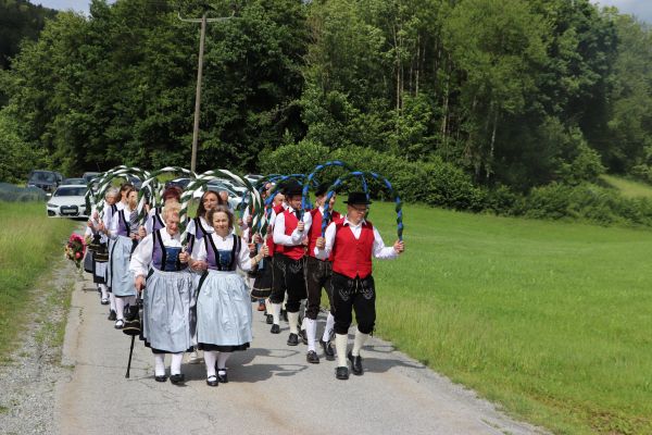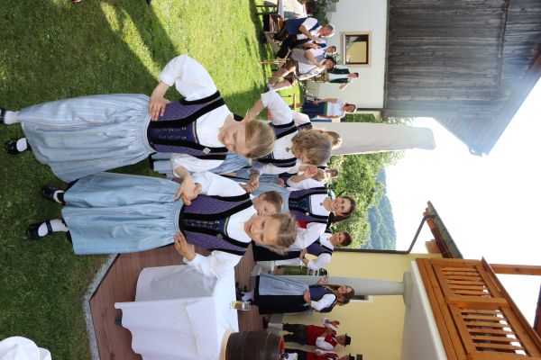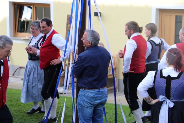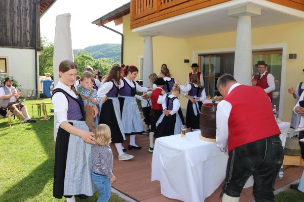 Mit Tanzeinlagen der Kinder und Erwachsenen, zu denen Vereinsmusikant Josef Küblböck fleißig aufspielte, wurde der Nachnittag in Wolfersreut kurzweilig gestaltet. Nun mussten die Mitglieder der Tanzgruppe mit dem Bandltanz ihr Können beweisen, was ohne vorherige Probe hervorragend gelang.