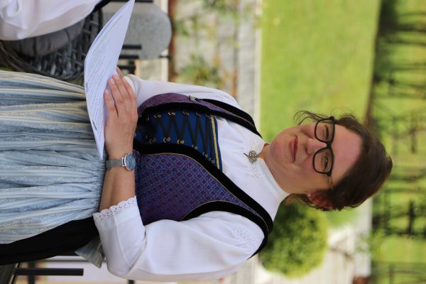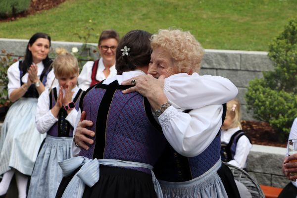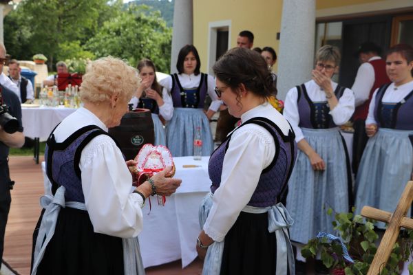 Fahnenmutter des Heimatvereins Buchberg werden zu dürfen sei für Petra Drexler eine große Ehre. Als Kind sei sie bereits zum Trachtenverein gekommen. Ihre Vorgängerin war damals wie eine zweite Mama zu ihr. Deswegen sei es "ganz was Besonderes" für Petra, dass sie nunmehr dieses Amt von ihr übernehmen dürfe. Resi Jell wünschte ihrer Nachfolgerin als neue Fahnenmutter ganz viel Glück und Freude in diesem Amt und überreichte ihr ein Fatschenkindl, welches ihr selbst auch Glück gebracht hatte.