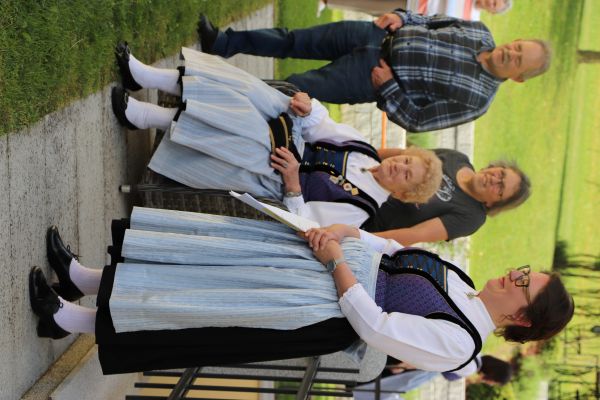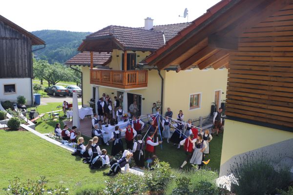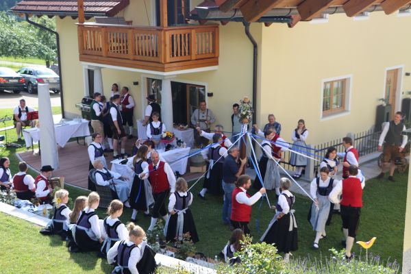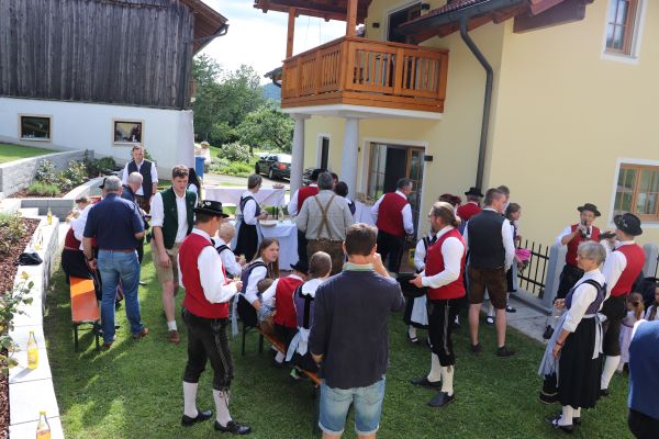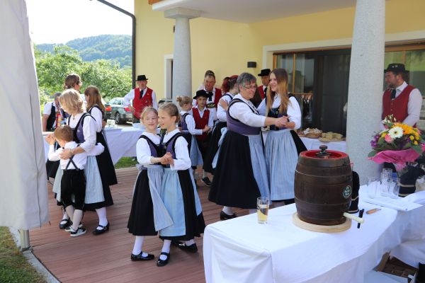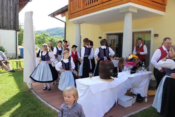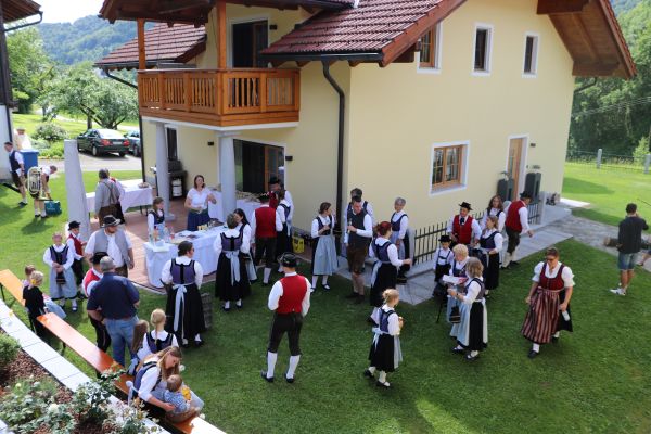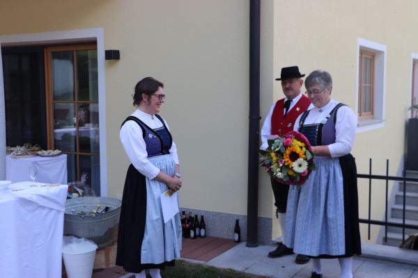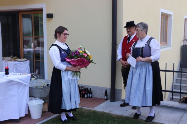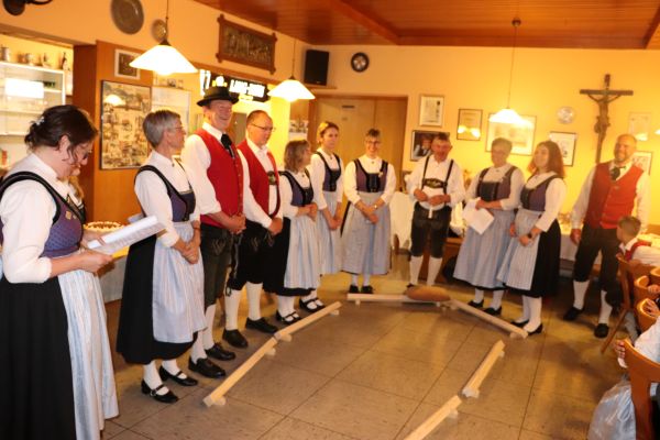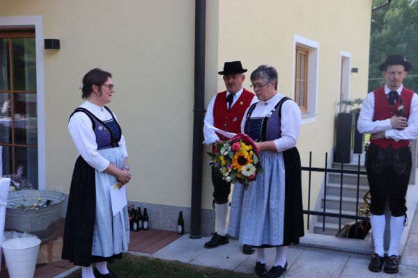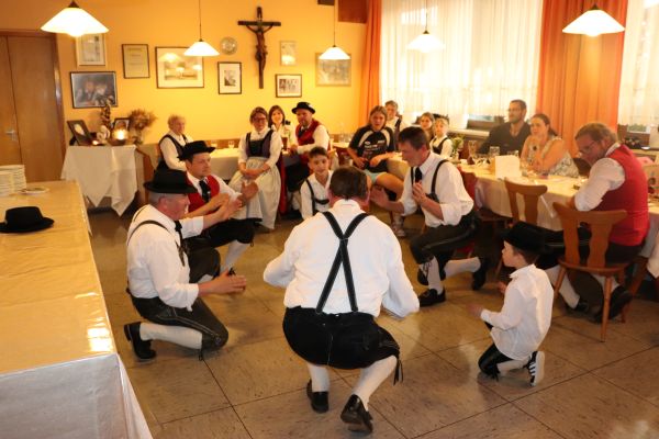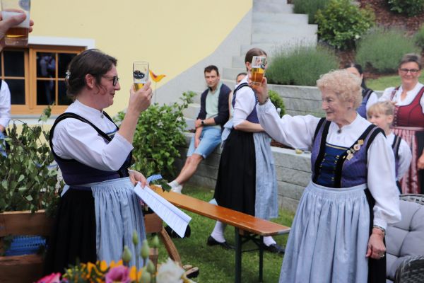 Mit Volkstänzen, musikalischen Einlagen und fröhlichen Gesprächen feierten die Trachtler ihre Fahnenmutter Petra bis in die frühen Morgenstunden.