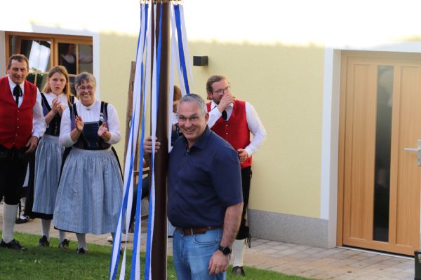 Bürgermeister Josef Gais freute sich, dass der Heimatverein Buchberg mit Petra Drexler wieder eine Fahnenmutter gefunden hat. Er sprach auch die Verdienste der anwesenden bisherigen Fahnenmutter Therese Jell an und dankte ihr hierfür. Sie gehörte dem Verein von der ersten Stunde mit an und war neben den 30 Jahren als Fahnenmutter auch 22 Jahre lang 1. Vorstand und Trachtenwartin bis 2012.