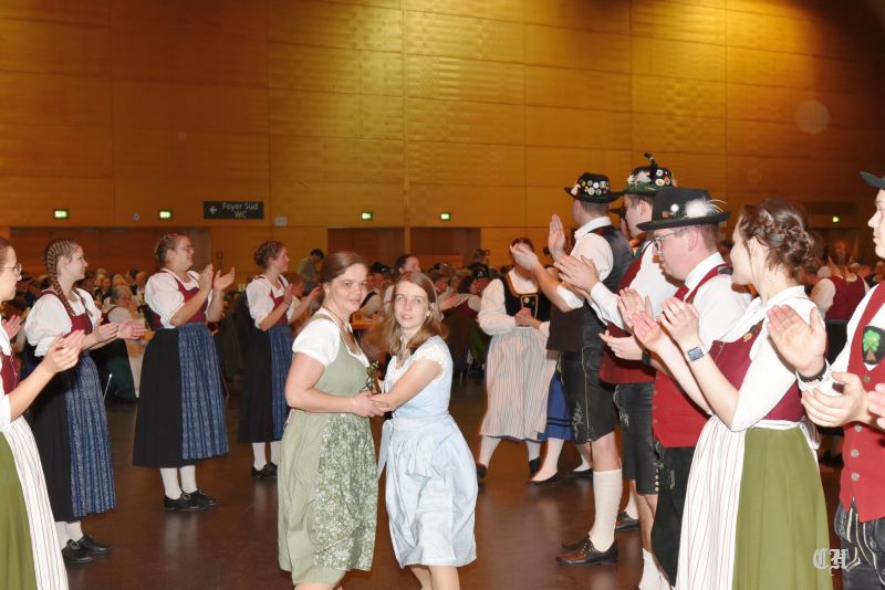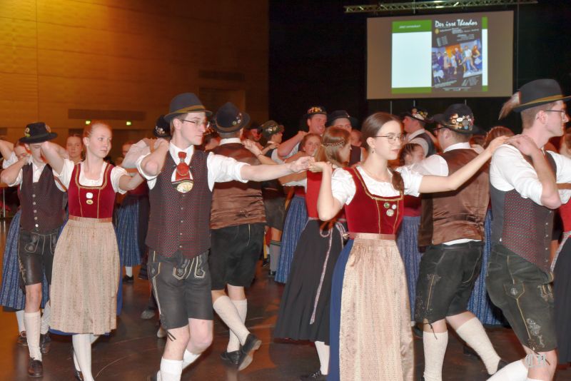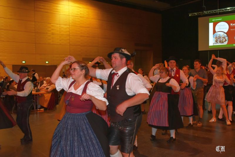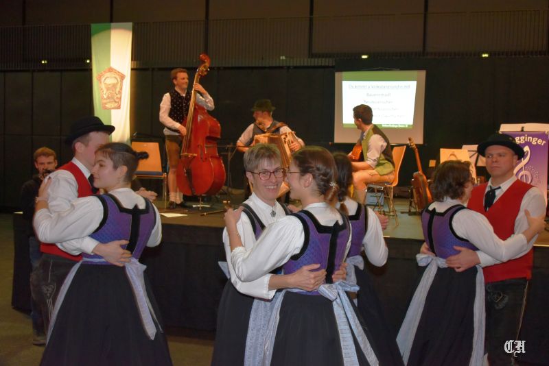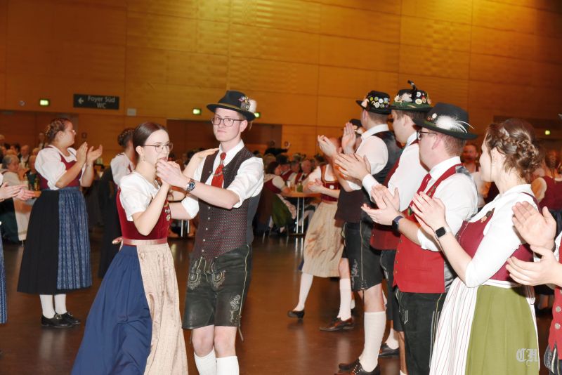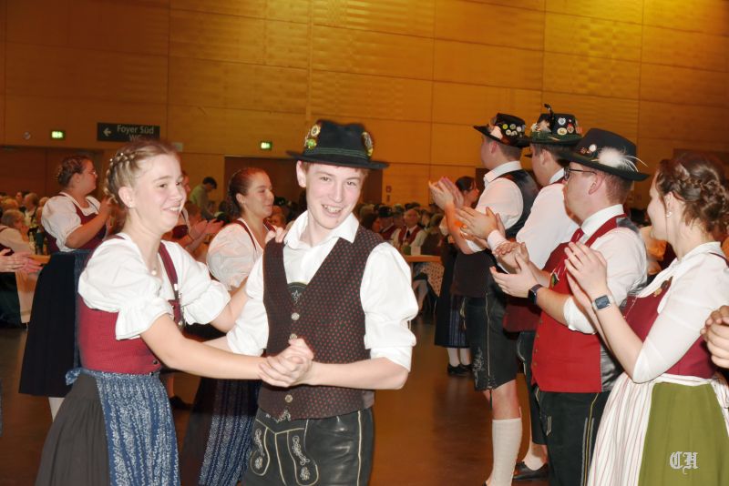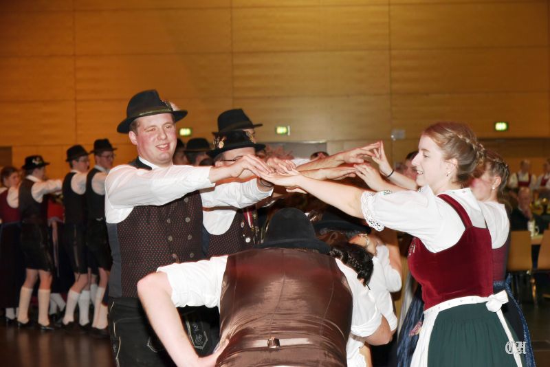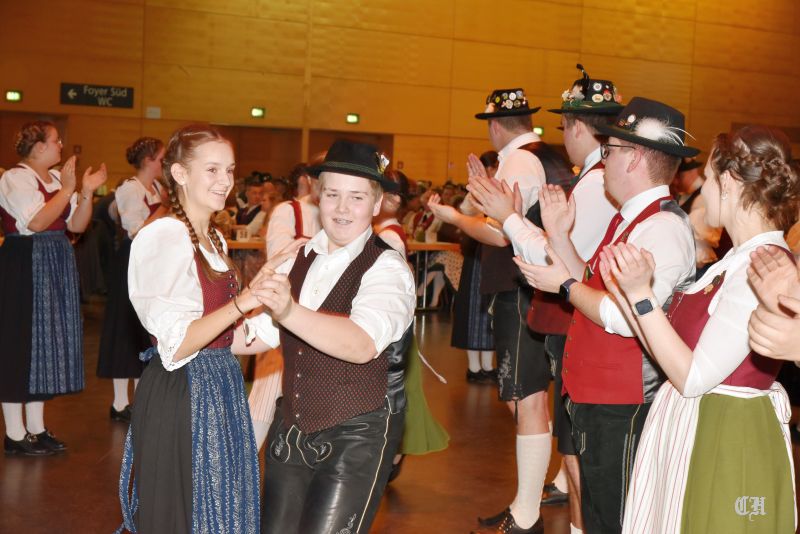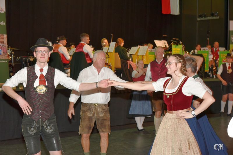 Es war ein imposantes Schauspiel, als die 140 Burschen und Dirndl der Trachtenjugend auf die große Tanzfläche in der Mitte der Dreiländerhalle marschierten und mit dem Auftanz den Ball eröffneten. Anschließend schwangen die Ballgäste bis in die Morgenstunden praktisch pausenlos das Tanzbein. Bei der Stange hielte sie die Musikanten mit Polkas, Boarischen und Walzermelodien. Aber auch mehrere Runden mit Volkstänzen und moderneren Stücken begeisterten die Tanzverrückten.