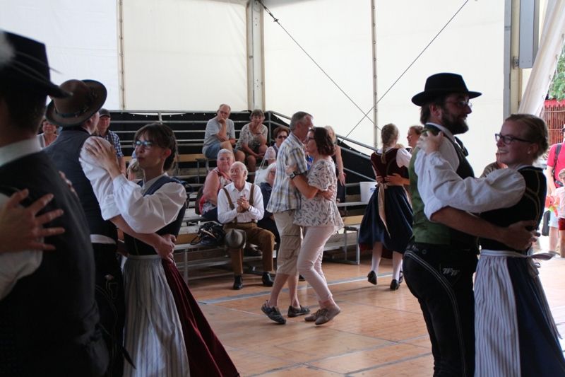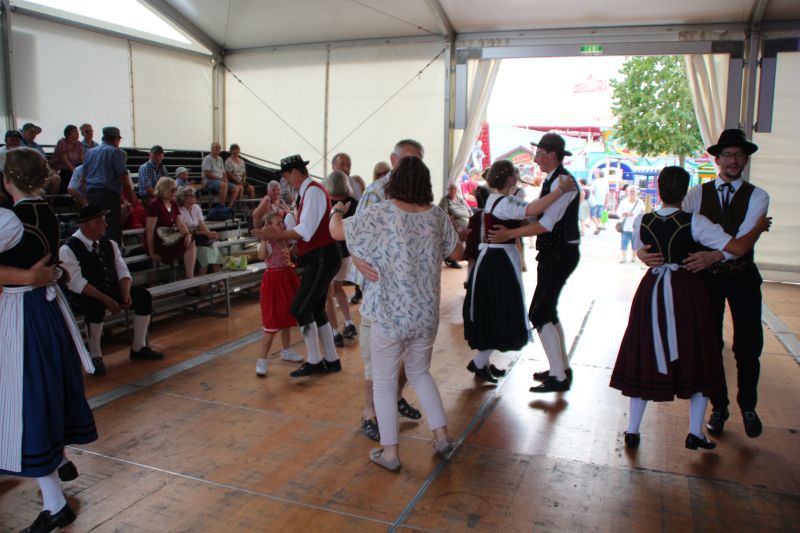 Für Gauvotänzer Thomas Roßmeier, der den Auftritt auf dem Gäubodenfest organisiert und vorbereitet hatte, war es aber ebenso wichtig, dass es nicht nur ein Auftritt der Gaujugendgruppe ist, sondern dass auch die Zuschauer eingebunden werden. So wurden einige lockere Tanzrunden mit einfachen Volkstänzen angeboten, bei der der Tanzboden für jeden offen stand. -hc