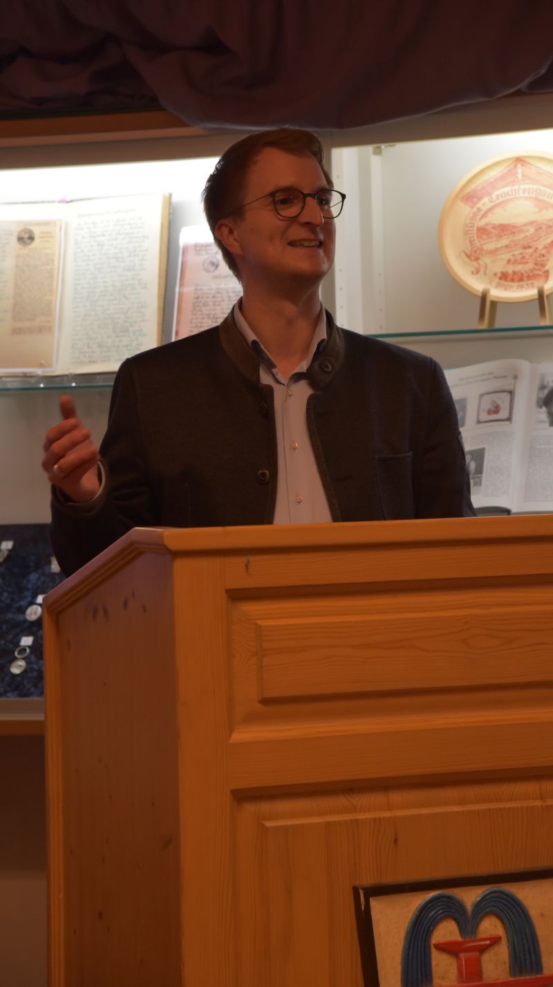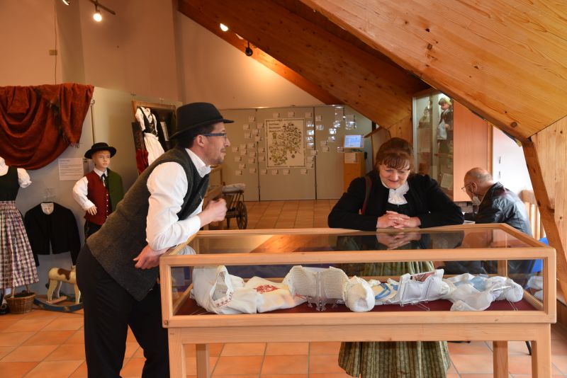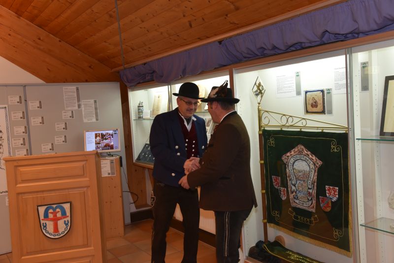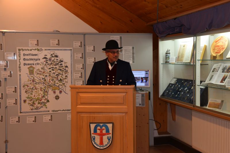 Gaumusikwart und Museumsleiter Willi Osterholzer führte zusammen mit Gauvorstand Walter Söldner die Gäste der Vernisage zur Eröffnung in die Ausstellung ein. Viele Diskussionen, Sitzungen und eineinhalb Jahre Vorbereitungszeit waren nötig, um die für den Betrachter informative und beeindruckende Ausstellung zu gestalten und so die Ausstellungsbesucher über das Trachten- und Brauchtumsgeschehen der Heimat zwischen Bayerischen Wald und Inn zu informieren. Die Jubiläumsausstellung ist nun jeden Dienstag und jeweils am ersten Sonntag im Monat, sowie für Gruppen nach Terminvereinbarung zu besichtigen.