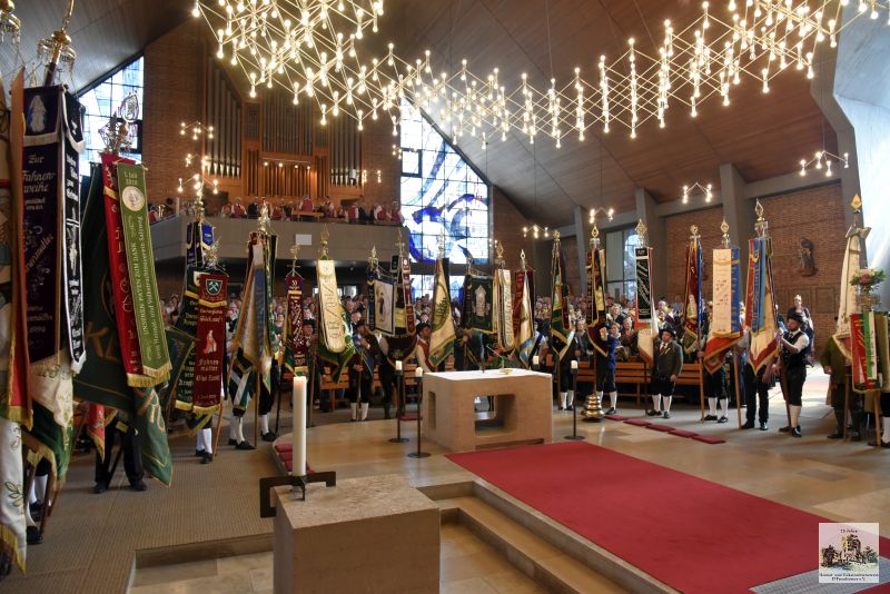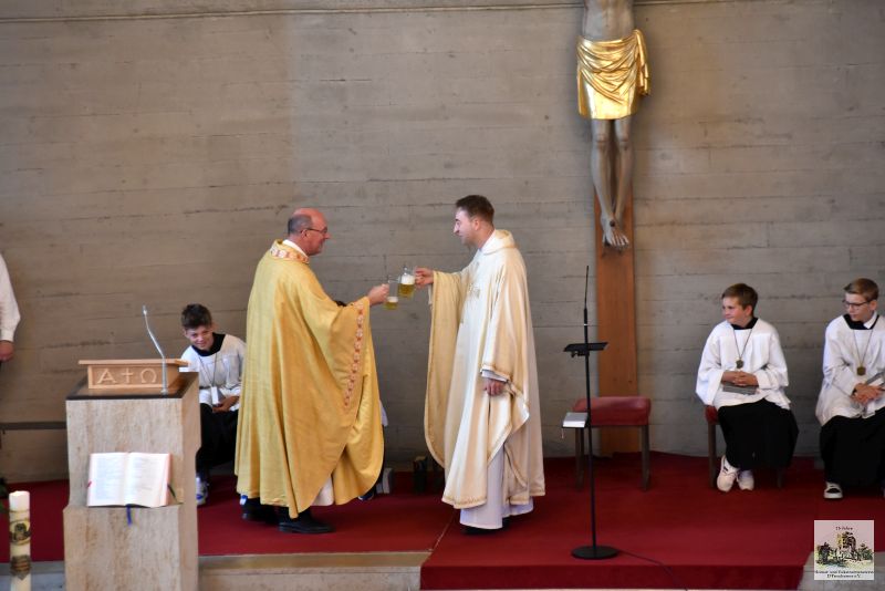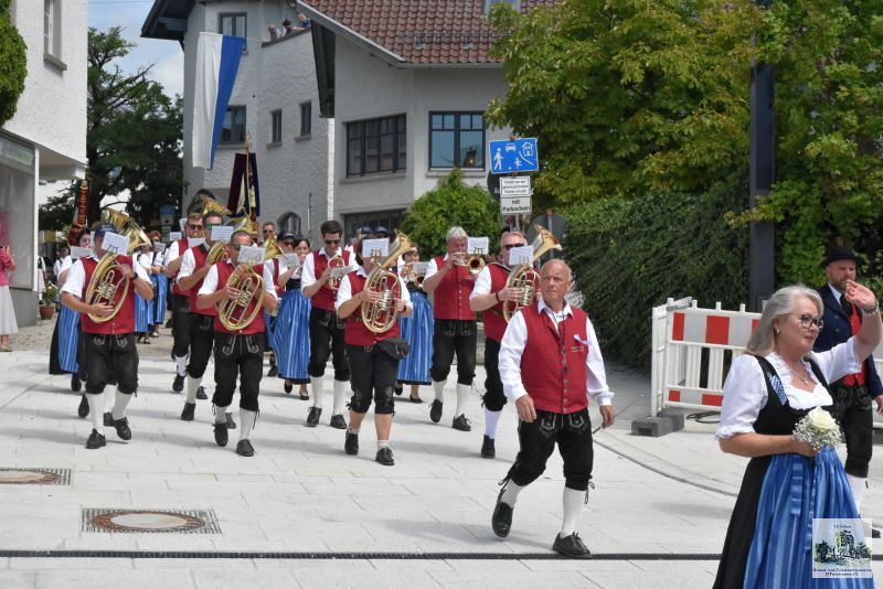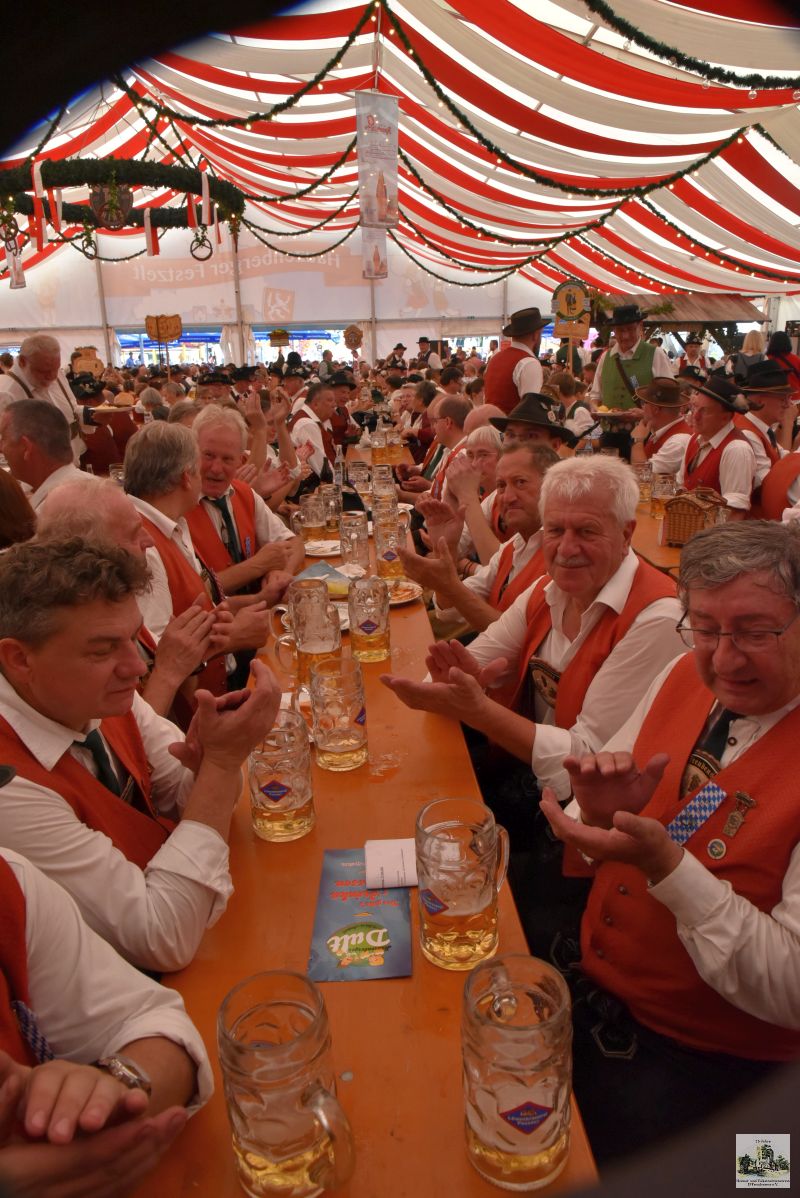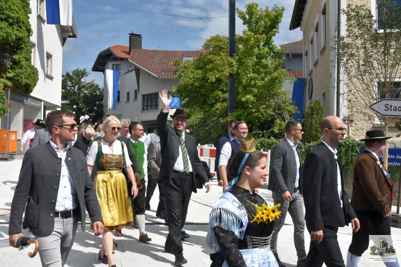 Der Höhepunkt war jedoch der Gaufestsonntag, der mit dem Festgottesdienst in der Pfarrkirche startete. Trachtenpfarrer Josef Tiefenböck stellte in seiner Predigt heraus, dass Brauchtum und Tradition noch immer die tragenden Säulen unter dem bayerischen Himmel sind. Und so ließ er es sich nicht nehmen mit Stadtpfarrer Alexander Aulinger mit einer „Hoibe“ „auf eine Gott gesegnete Zukunft der Trachtlerinnen und Trachtler“ anzustoßen.