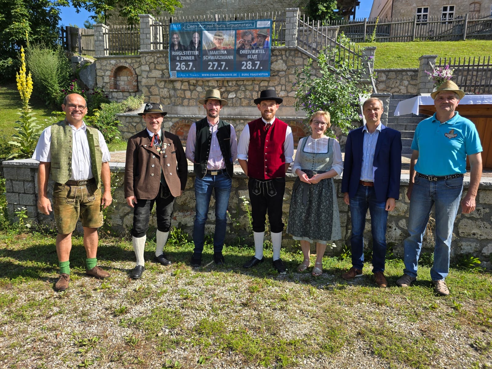 Der Tag begann mit einem Wortgottesdienst mit dem Eringer Diakon Andreas Ragaller. „Was ist eigentlich Heimat?“, was seine Frage an die Trachtenjugend. Es wurde schnell klar, dass die Antwort „mein Heimatort“ nicht ausreicht. Vielmehr bedeutet Heimat, wo man sich wohl fühlt und wo auch Gott bei jedem einzelnen ist, wo man Freunde & Freude und Glauben findet. Der Gottesdienst vor der beeindruckenden Kulisse der Burg Frauenstein wurde vom Eringer Singkreis, sowie von der neuen Harmonika-Gruppe der Eringer Trachtler umrahmt.