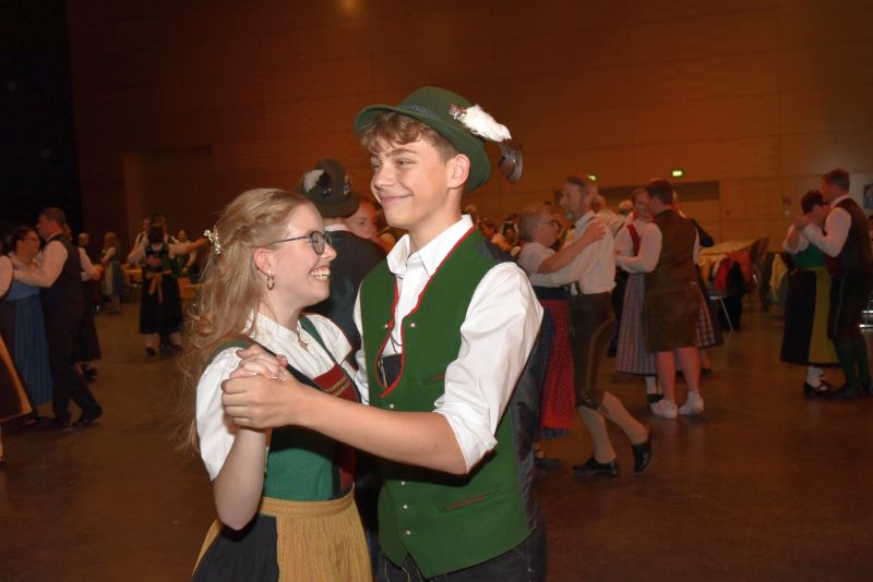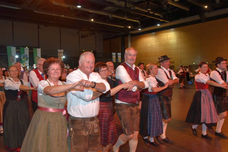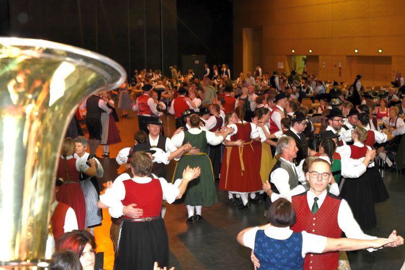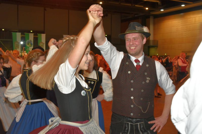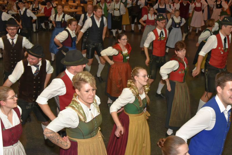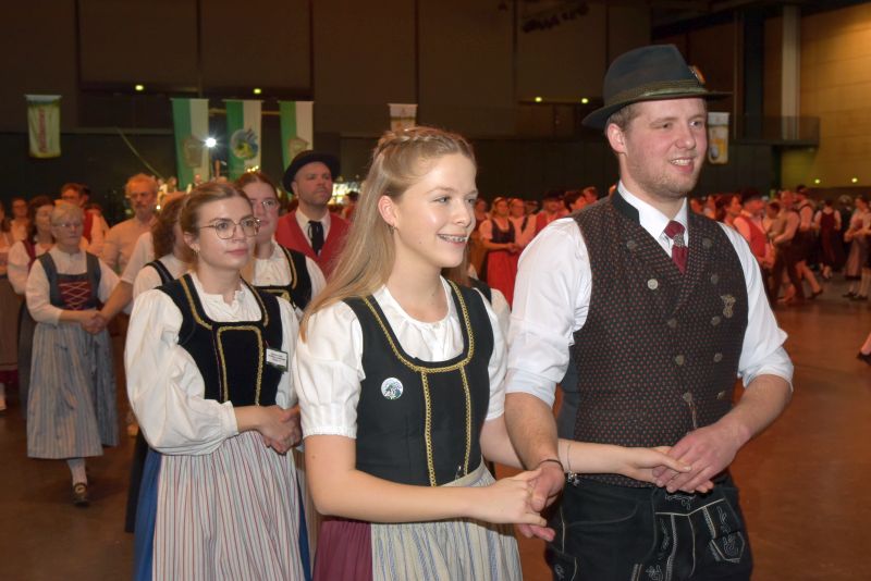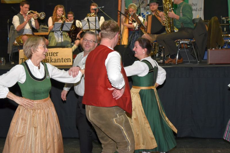 Es war ein imposantes Bild, als die Burschen und Dirndl auf die große Tanzfläche in der Mitte der Dreiländerhalle einmarschierten und in zwei großen Kreisen mit dem Auftanz den Ball eröffneten. Bis in die Morgenstunden hatten die Ballgäste fast pausenlos die Gelegenheit zum Tanz. Während die Halser Musikanten und die Passauer Tanzmusikanten mit Polka, Boarischen, Walzer und Volkstänzen die Tanzverrückten begeisterten, sorgten die Johannesbläser auch mit den Standardtänzen dafür, dass für alle etwas dabei war, um so richtig abzutanzen.