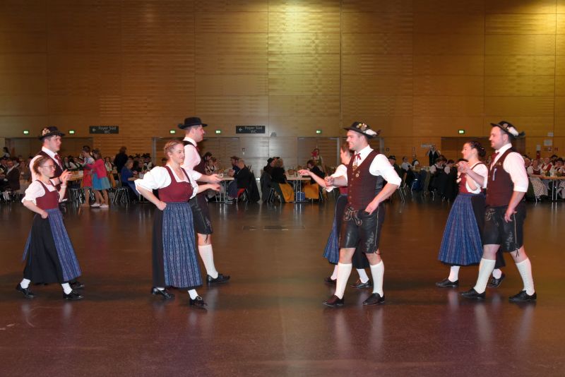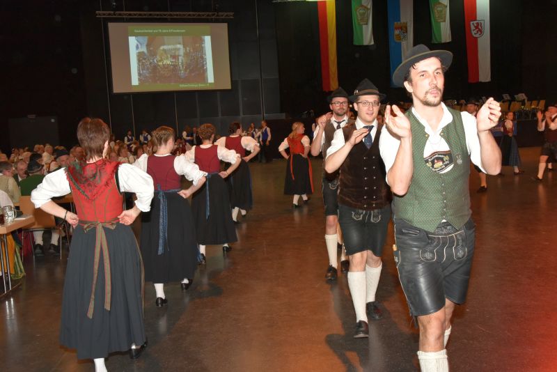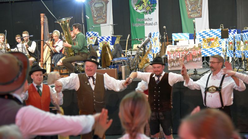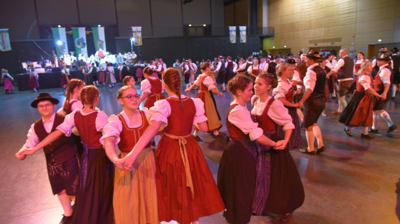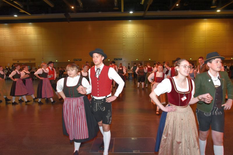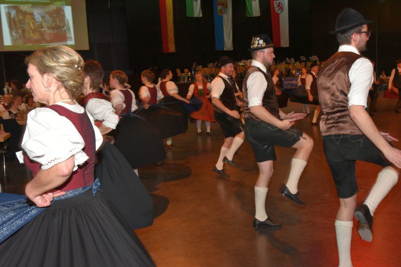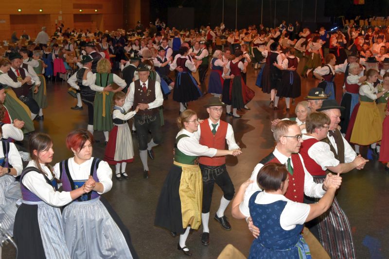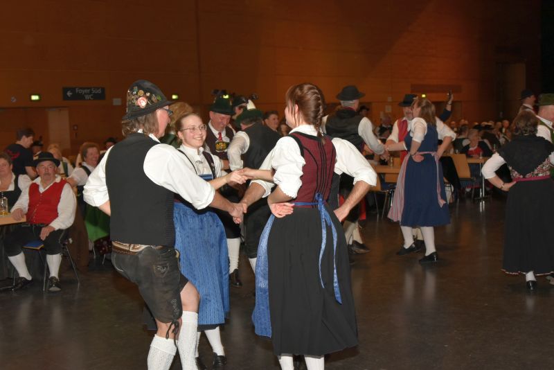 Es war ein imposantes Bild, als die Burschen und Dirndl auf die große Tanzfläche in der Mitte der Dreiländerhalle einmarschierten und in zwei großen Kreisen mit dem Auftanz den Ball eröffneten. Bis in die Morgenstunden hatten die Ballgäste fast pausenlos die Gelegenheit zum Tanz. Während die Halser Musikanten und die Passauer Tanzmusikanten mit Polka, Boarischen, Walzer und Volkstänzen die Tanzverrückten begeisterten, sorgten die Johannesbläser auch mit den Standardtänzen dafür, dass für alle etwas dabei war, um so richtig abzutanzen.