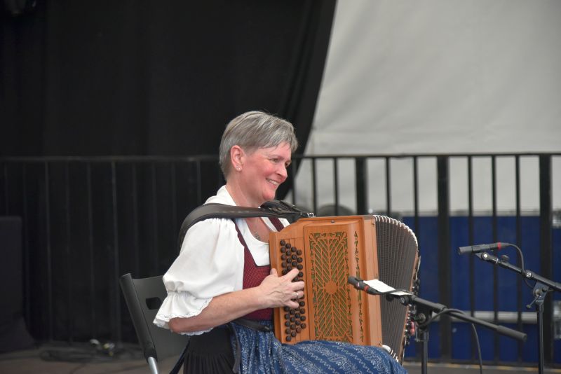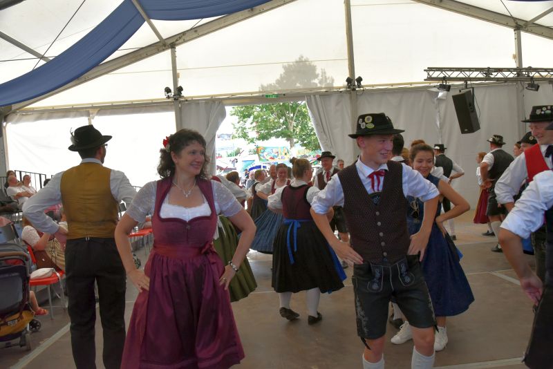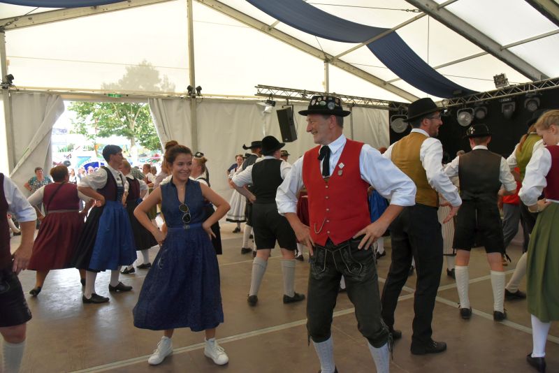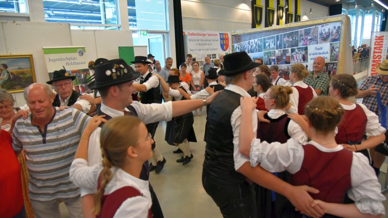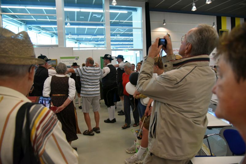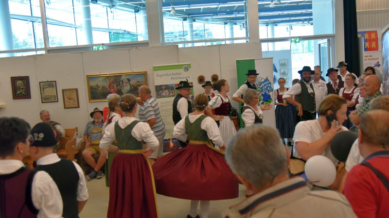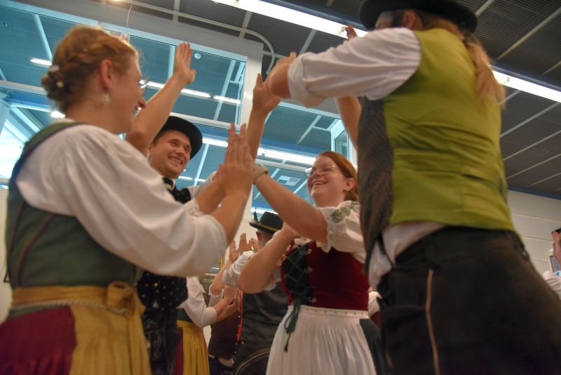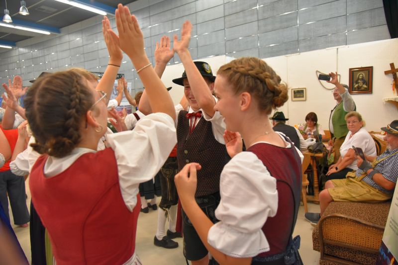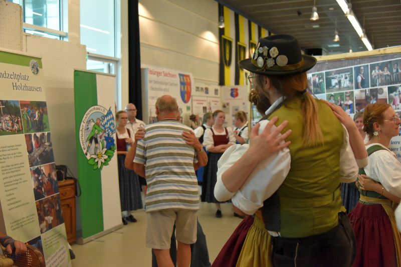 Doch Volkstanz ist nicht nur etwas zum Anschauen. Der Volkstanz soll auch unters Volk kommen. Und so holten sich die Burschen und Dirndl zum Abschluss ihrer Auftritte die Zuschauer auf die Tanzfläche und tanzten gemeinsamen mit ihnen einen Boarischen. Ein Auftritt auf dem Messestand des Bayerischen Trachtenverbandes auf der Ostbayernschau in der Joseph-von-Fraunhofer-Halle rundete die Auftritte ab schließlich ab.